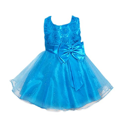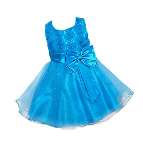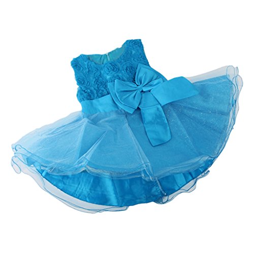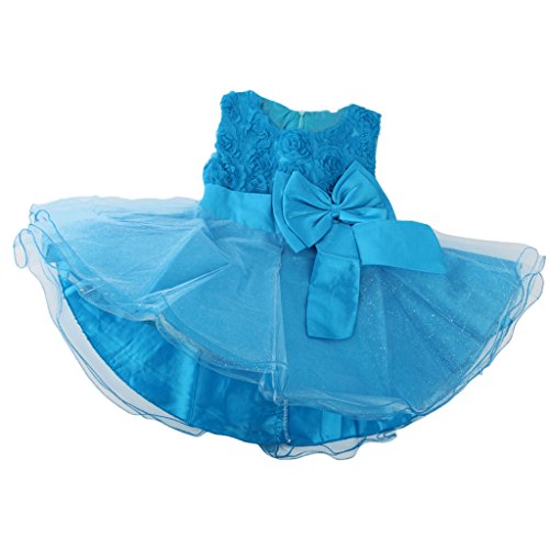 【ノーブランド 品】女の子 キッズドレス 蝶結び ベルト付き プリンセスドレス ウエディングドレス ブルー 身長全6サイズ - 110cm