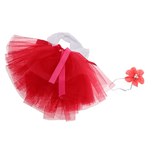 【ノーブランド 品】赤ちゃん 女の子 チュチュスカート 写真撮影 小道具 ヘッドバンド付き かわいい ギフト 全4色 - レッド