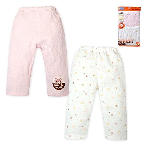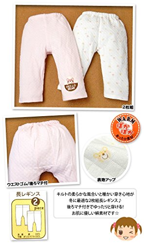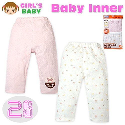 (ピンク/90cm)ベビー レギンス 肌着 女の子 2枚組 キルト あったか素材 くま柄 女児 ベビー