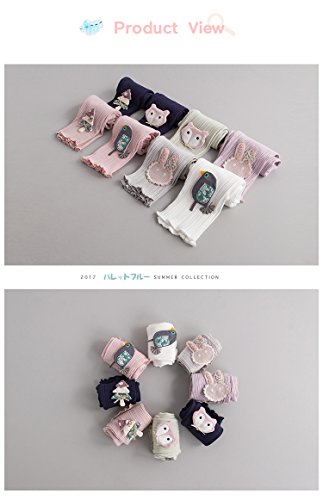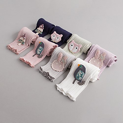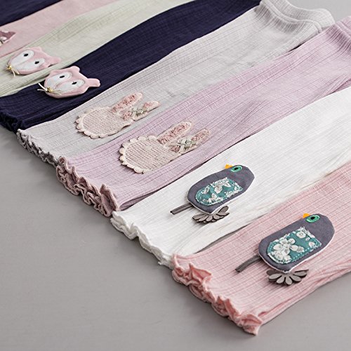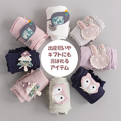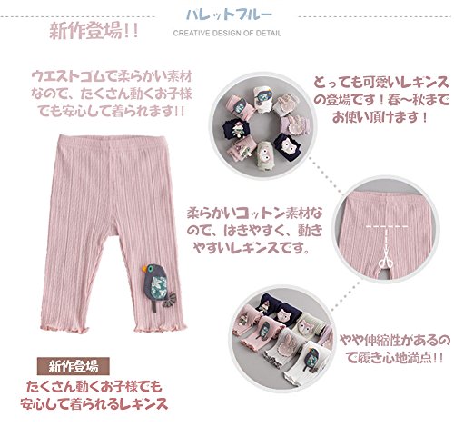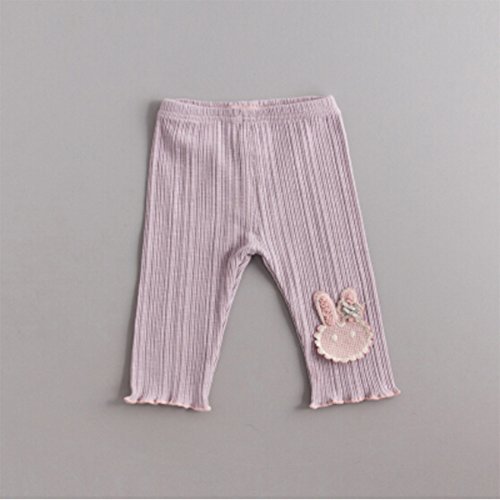 レギンス パンスト ガールズ 5分丈 スパッツ かわいい 花柄 付き タイツ パンツ キッズ 子供 ジュニア 女の子 春秋 カジュ アル パンス 綿 ソックス タイツ スキニー 靴下 長ズボン 刺繍 下着 80 90 100 110 120cm センチ (80, パープルウサギ)