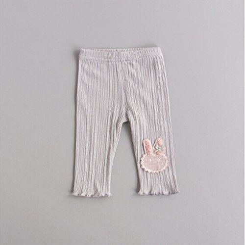 レギンス パンスト ガールズ 5分丈 スパッツ かわいい 花柄 付き タイツ パンツ キッズ 子供 ジュニア 女の子 春秋 カジュ アル パンス 綿 ソックス タイツ スキニー 靴下 長ズボン 刺繍 下着 80 90 100 110 120cm センチ (80, グレイーウサギ)