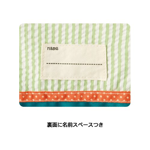 - ●素材/(表地)綿100%、(裏地)ポリエステル100%●色/グリーン●サイズ/約縦20×横18cm●天口巾着式開閉●裏面に名前スペースつき●中国製※手洗い