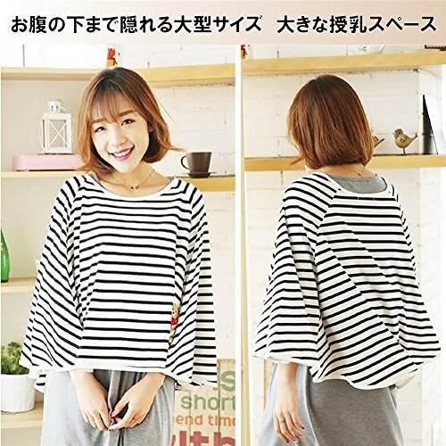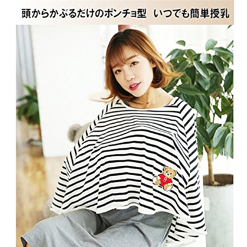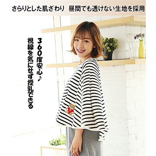 授乳ケープ ボーダー ポンチョ型 360度安心 マタニティ 上質 肌に優しい 素材 出産祝い フリーサイズ ネイビー (ネイビー)