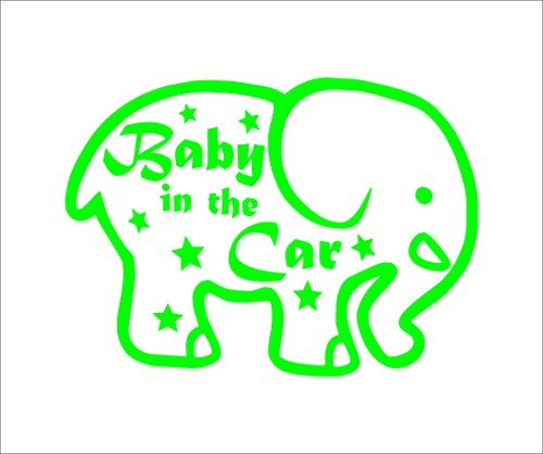 ノーブランド 緑 ゾウ&星 Baby in the car シール ステッカー デカール