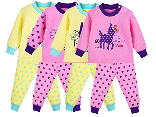可愛い パジャマ ベビー 赤ちゃん 女の子 80cm 桃色A 桃色A 黄色A 黄色B 上下セット 子ども服 (ピンクA)