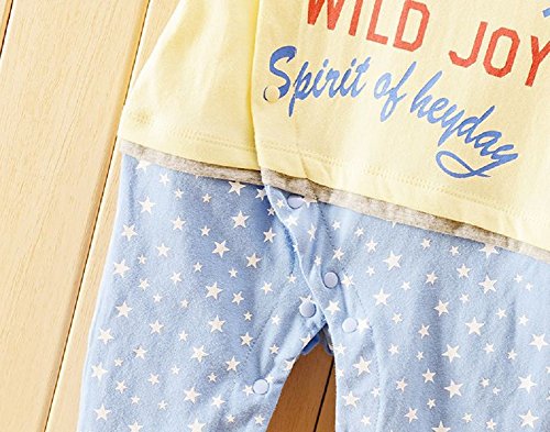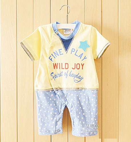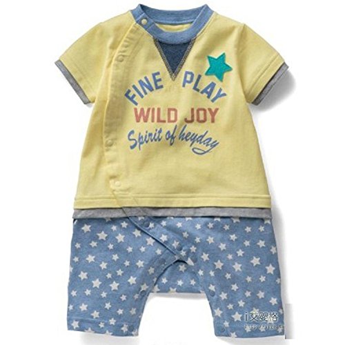 カジュアル ロンパース 男の子 ベビー 80cm 赤色 緑色 黄色 半袖 シャツ (イエロー)