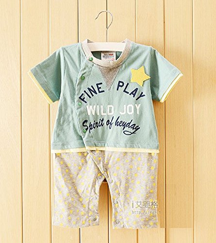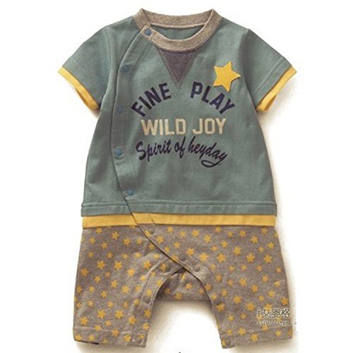 カジュアル ロンパース 男の子 ベビー 80cm 赤色 緑色 黄色 半袖 シャツ (グリーン)