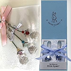 【ステンレス スプーン 】出産祝い 名入れ ベビースプーン 銀のスプーン お誕生日 記念日 ギフト 名入れ ピーターラビットステンレスのスプーン 幸運のお守り サンキャッチャー付き (3月の誕生石のサンキャッチャー)