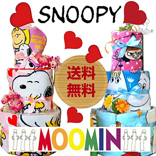【男の子用】スヌーピーのスタイとタオルの おむつケーキ オムツケーキ (パンパースS)