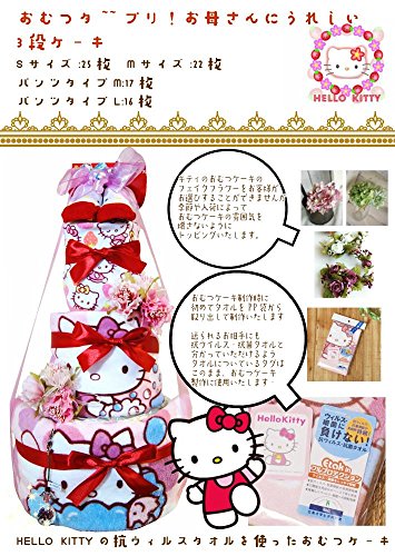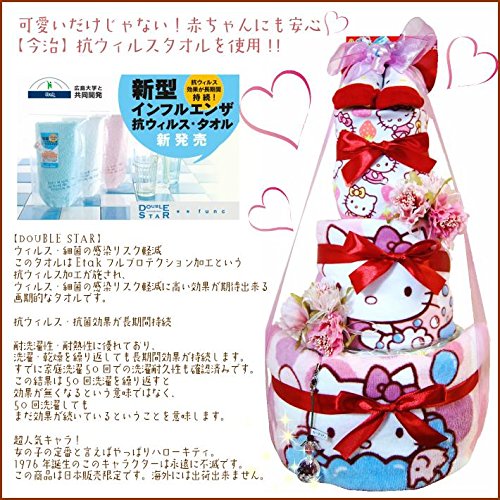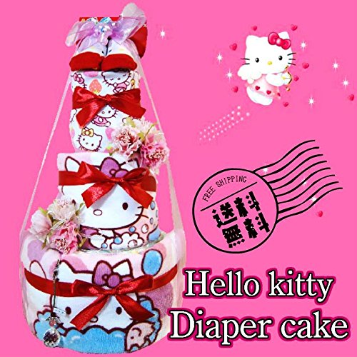 おむつケーキ ハロー キティ 3段ケーキ 今治 抗菌タオル使用 スタイ ソックス 靴下 出産祝い (パンパースM)