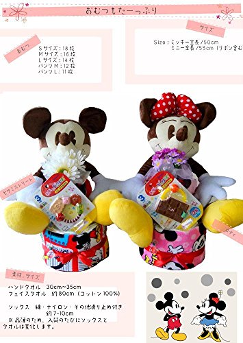 - こちらのおむつケーキは【ミッキーのぬいぐるみとチョコットかみかみ】を使用してます。
