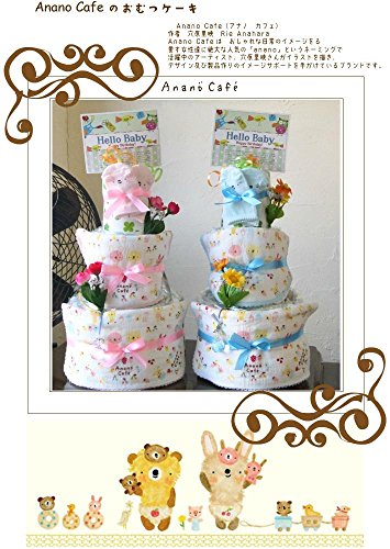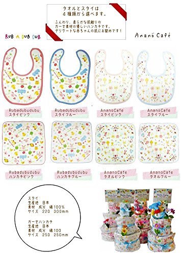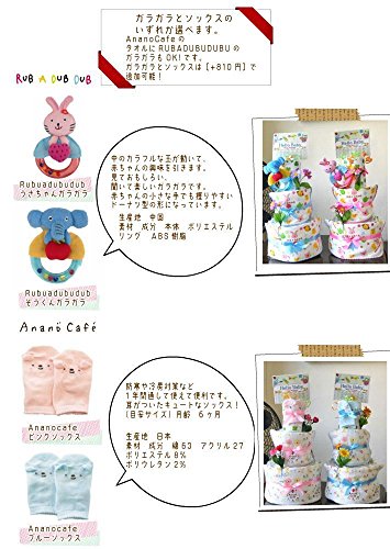 - 【Rub a dub dub】【ブルー】【ぞうくんガラガラ】おむつケーキ 3段 ananocafe Rubadubdub タオルとスタイ 出産祝い 男の子 女の子 オムツケーキ