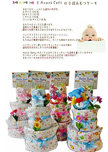 【Rub a dub dub】【ブルー】【ぞうくんガラガラ】おむつケーキ 3段 ananocafe Rubadubdub タオルとスタイ 出産祝い 男の子 女の子 オムツケーキ (パンパースM)