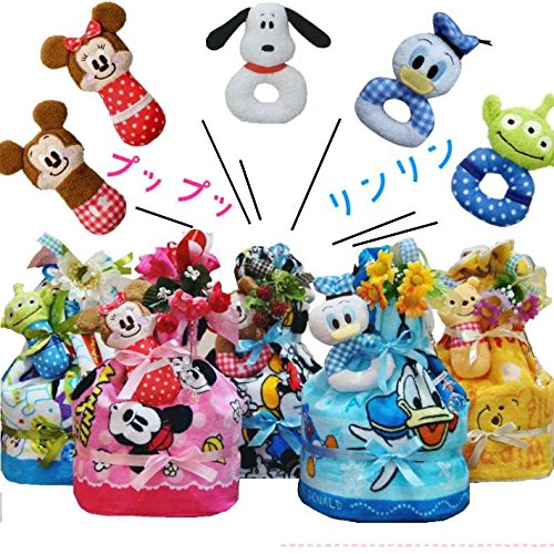 - こちらのおむつケーキは【プーさんンのタオルとプップとラトル】を使用してます。