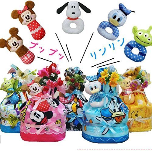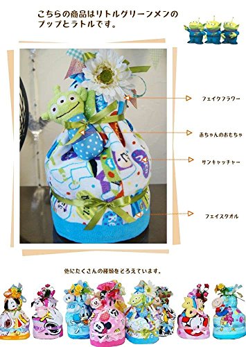 - こちらのおむつケーキは【リトルグリーンメンのタオルとプップとラトル】を使用してます。
