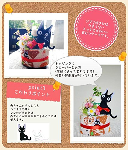 (パンパースM) 2段 おむつケーキ ジブリ 魔女の宅急便 ジジ ギフト用タオル使用 ジジガラガラ 出産祝い (1月のサンキャッチャー)