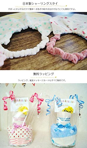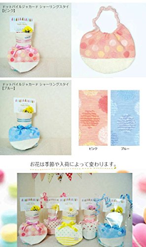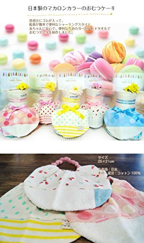 - こちらのおむつケーキは【ドット×ボーダーシャーリングスタイ【ピンク】と今治ガーゼハンドタオル】を使用してます。