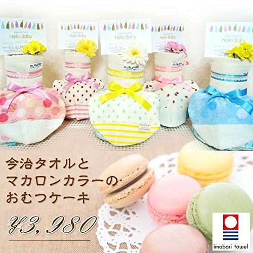 ドット×ボーダー【ピンク】【パンパースS】おむつケーキ 出産祝い マカロンカラー 今治タオルとシャーリング スタイ 送料無料 男の子 女の子オムツケーキ (5月のサンキャッチャー)