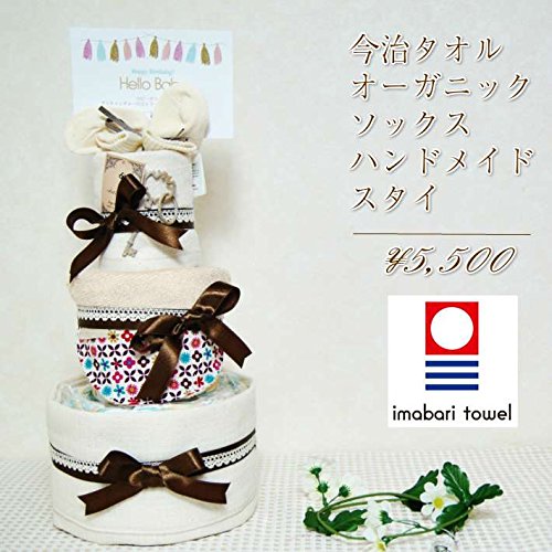 【パンパースS】【ピンクスタイ】おむつケーキ 出産祝い ハンドメイドスタイ 3段 おむつ 今治 タオル オーガニックベビーソックス (11月の誕生石のサンキャッチャー)