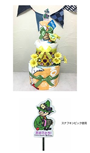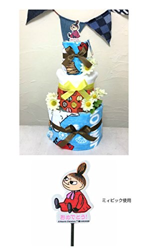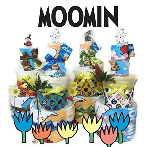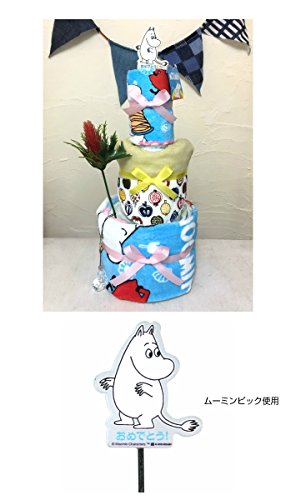 (パンパースS)ムーミンのタオルとハンドメイドスタイの おむつケーキ オムツケーキ (ピックの種類【ムーミン】, スタイのカラー【オレンジ】)