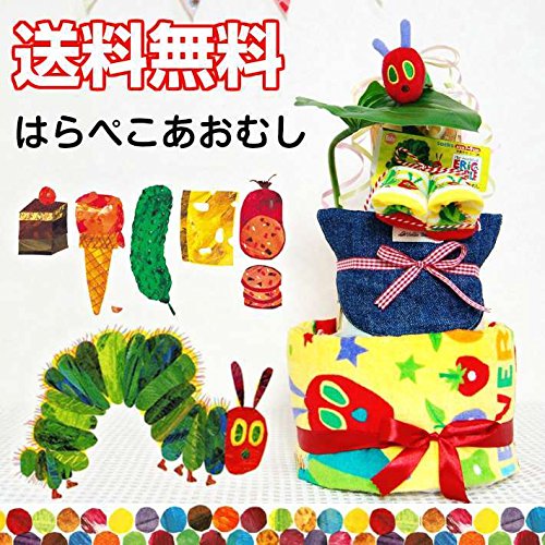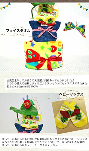 - こちらのおむつケーキは【はらぺこあおむしにんぎょう】を使っています。その他のおむつケーキは上部【おむつケーキとサンキャッチャーHiding】をクリックしてください。