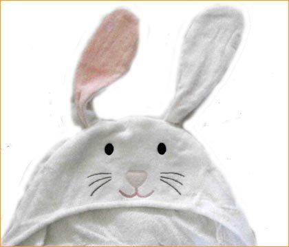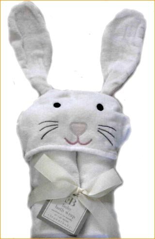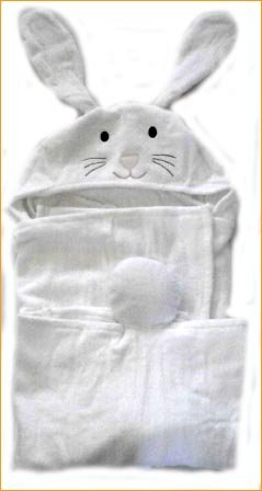 タオル製ベビー服=タオル フード付きバスタオル=アフガン おくるみ アニマルフード 掛け物 タオルケット=出産祝いやギフトにもどうぞ (ホワイトうさぎさん)