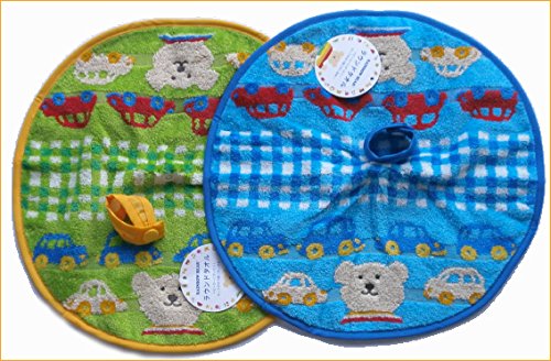 有るようで無いのが丸型タオル。吊り下げて使えるのでとっても便利で重宝します。丸型ですのできちっと下げられます。 中央のループで、ベビーカーやベッドサイドや洗面所に吊るしておけばいろんな使い方ができます。 またママのバッグやリュックに吊り下げておいてもいいですね。 中央のループは取り外せますので、食卓や花瓶敷きなど沢山の用途で使えるんが丸型タオルのいいところです。 滑らか仕上げをしたこのタオルはすべすべで柔らかくて赤ちゃんのほっぺのような触りごこちです。 特に熊さんの顔や手足は無撚糸という更に柔らかな特殊素材を使用していますので、タオルの中にぬいぐるみが住んでいるようなふっくら感があります。 この柔らかさと肉厚感は実際に手にしてみないとわかりません。 また、これだけはっきりとして鮮やかな色合いのタオルは珍しいですよ、柄も可愛くて思わず微笑んでしまいます やっぱり良いものは良いですね。 いい商品を知っている賢いママのグッドチョイスです。 こんな可愛い柄のタオルを使っていれば心も晴れやかで、とってもハッピーになれます。 出産祝いやギフトにもどうぞ。サイズ=直径32cm
