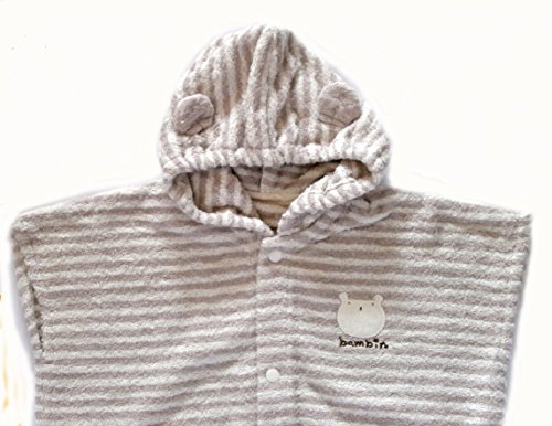 赤ちゃんの必需品、湯上りタオルです。フードが付いてポンチョ型に仕上げた便利な商品です お風呂から上がったらさっと着せてあげれば、髪の毛から全身スッポリと包んで吸水いたします。 ポンチョ型ですので、お洋服のように着せて水分を拭き取れますので、バスタオルで拭いてあげるより簡単で便利です。 湯上りタオルとしては勿論、バスローブ アフガンおくるみとして、お出かけの時の掛け物として色々使い道をお考えください。 日常生活のお洋服としても使えます。タオル製でポンチョ型のを作ったアイデアがすごいですね。 タオル製のポンチョ型デザインの商品ですので、ご用途がいっぱいで重宝致します。 今治タオル認定タオルで仕上げていますので、とって柔らかで肌触りは抜群です。 普通のタオルと比べても、軽くてふわふわでソフトに仕上がったタオルとなっています。 タオルの吸湿性と柔らかさとお洗濯に強い特質は、赤ちゃんのお肌に最適な環境を提供いたします。 毎日お洗濯をしなくてはならない赤ちゃん用品には、お洗濯に強いタオル素材が1番ですね 出産祝いやギフトにもどうぞ。 サイズ==43cmx55cm 日本製が嬉しい