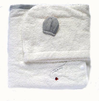 - スナップを留めて、フード付きポンチョのような形にして、お風呂上りなどの時にすっぽり被せましょう