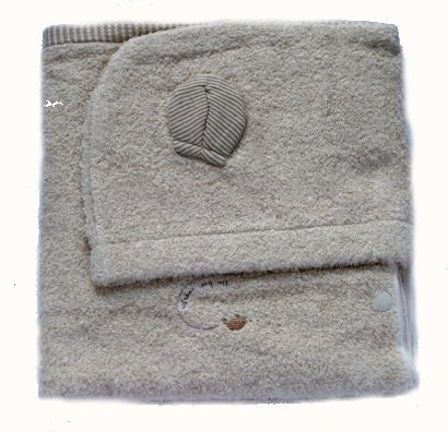 タオルは赤ちゃんの必需品ですね。いろんな場面で大活躍するバスタオルにフードを付けました。 フードとスナップを付けたことで一気にご用途の幅が広がりました。 湯上りタオルとして、アフガンおくるみとして、お出かけの時の掛け物として色々使い道をお考えください。 オーガニックコットンを60%使用した赤ちゃんのために織り上げたタオルを、時間を掛けて丁寧に水洗いしてとって柔らかで肌触のいい素材に仕上げました。 普通のタオルと比べても、軽くてふわふわでソフトに仕上がったタオルとなっています。 フード付ですので、お風呂上りに頭からすっぽりと被せて包んであげればわざわざ拭いてあげる必要もないので便利です。 頭の水分もどんどん吸湿してくれます。お風呂上りに体や頭を拭く時間を省けるので、寒い季節など重宝致します。 タオル製ですのでオールシズン使え、またお肌に優しく吸湿性もたっぷりです。 お洗濯に強いのもうれしいですね サイズ=60cmx120cm 日本製 出産祝いやギフトにもどうぞ