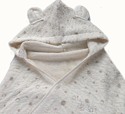 タオルは赤ちゃんの必需品ですね。いろんな場面で大活躍するバスタオルにフードを付けました。 フードとスナップを付けたことで一気にご用途の幅が広がりました。 湯上りタオルとして、アフガンおくるみとして、お出かけの時の掛け物として色々使い道をお考えください。 オーガニックコットンを60%使用した赤ちゃんのために織り上げたタオルを、時間を掛けて丁寧に水洗いしてとって柔らかで肌触のいい素材に仕上げました。 普通のタオルと比べても、軽くてふわふわでソフトに仕上がったタオルとなっています。 フード付ですので、お風呂上りに頭からすっぽりと被せて包んであげればわざわざ拭いてあげる必要もないので便利です。 頭の水分もどんどん吸湿してくれます。お風呂上りに体や頭を拭く時間を省けるので、寒い季節など重宝致します。 タオル製ですのでオールシズン使え、またお肌に優しく吸湿性もたっぷりです。 お洗濯に強いのもうれしいですね サイズ=60cmx120cm 日本製 出産祝いやギフトにもどうぞ