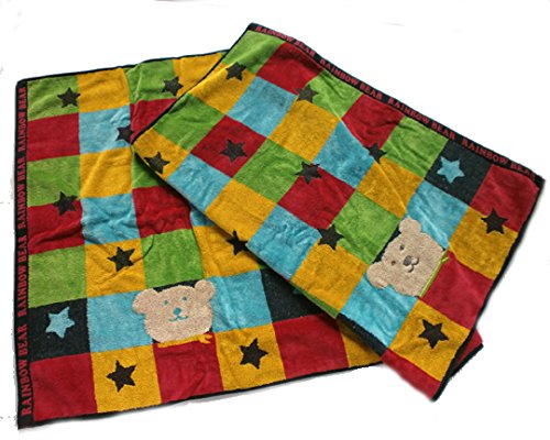 レインボーベアーシリーズの可愛いバスタオルが出来ました。 普通のバスタオルとしては勿論、赤ちゃんの湯上りタオルとして使えば、すっぽり包めて重宝致します。 そのほかにプールや海のバスタオルとして、赤ちゃんの湯上りタオルとして、ちょっとした掛け物として大活躍いたします。 顔の部分は特に柔らかな無撚糸タオルを使用していますので、ふわふわに仕上がっています。 これだけはっきりとして、鮮やかな色合いのタオルは珍しいですよ、柄も可愛くて思わず微笑んでしまいます 滑らか仕上げをしていますし肉厚の素材ですので、とっても肌触りや使い心地が快適です。 やっぱり良いものは良いですね。 こんな可愛い柄のタオルを使っていれば心も晴れやかで、とってもハッピーになれます。 出産祝いやギフトにもどうぞ サイズ=60cmx120cm 綿100%