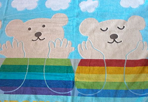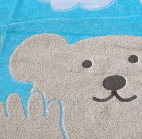 サイズの大きなビッグバスタオル。大判バスタオルを使う場面は多いいですね。広げると本当に大きいですよ 風呂上りの時などすっぽたっぷり巻けて、髪の毛も拭けますね そのほかにプールや海のバスタオルとして、赤ちゃんの湯上りタオルとして、アフガンおくるみとして大活躍いたします。 レジャーやお出かけの時に持っていけば、敷物として使い、何時でも何処でも衛生的で安全なスペースを確保できます またベビーケットの大きさがありますので、赤ちゃんのタオルケットとしてお出かけの時の掛けものとしても使えます。 こんなタオルに包まれてキット素敵な夢を見ている事でしょう これだけはっきりとして、鮮やかな色合いのタオルは珍しいですよ、柄も可愛くて思わず微笑んでしまいます 滑らか仕上げをしていますし肉厚の素材ですので、とっても肌触りや使い心地が快適です。 やっぱり良いものは良いですね。 大柄のくまさん柄ですのでお子様も大喜び。 98cmx145cmのサイズがありますので、十分いろいろな使い方に対応できますね。 こんな可愛い柄のタオルを使っていれば心も晴れやかで、とってもハッピーになれます。 日本製 今治タオル認定品 出産祝いやギフトにもどうぞ
