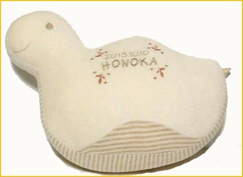 ひとつは与えてあげたいのがおやすみ枕です。寝るとき以外でも赤ちゃんが触ったり抱っこしたりで とっても重宝いたします。 赤ちゃんにとっては枕の動物さんが、親しいお友達となり、いつでも側においておきたくなる商品となります。 皆様も経験があると思いますが、枕が側にあるだけで安心だし気持ちも安定し、情緒安定に役立ちます。 寝る時も安心してすやすやと眠ることでしょう 大きくなってもぬいぐるみとして遊べますので、長い期間お使えになれる逸品です 大きさも手ごろな約50cmで素材もオーガニックコットンを使用しております。 1つ1つ手つくりをしてお名前とお誕生日を刺繍いたします。 お値段は少々高めですが、それだけの作りと素材と仕上がりで、自信をもってお勧めいたします。 大切な赤ちゃんには、やっぱり良品を与えてあげたいですね。 お手数ですが刺繍するお名前と生年月日と字体は、ご注文後ご連絡を差し上げてお問い合わせをさせていただきます。