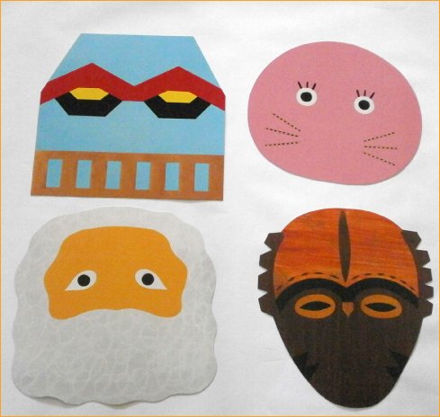 - 世界の有名おめんの集合です おめんに色んなパーツを取り付けて目や鼻や口のシールを貼ればオリジナルお面のできあがり