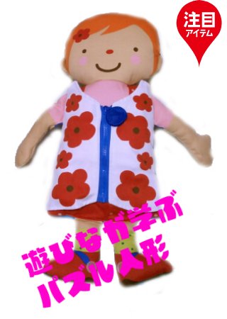 片面が女の子、もう片面が男の子の一人二役のパズル人形です。 お人形さんとして遊ぶことは勿論、指先の訓練に役立つ知育玩具としても使えます。 いろいろと仕掛けがありますので お子様がさわって、嵌めて、留めてと 一人で楽しく遊べます。 ボタンを留める、 お洋服のファスナーを開ける、靴ベルトを留めるなど 色々触ることで、指先の訓練にも役立ちます。 また色が鮮やかではっきりとしていますので、お子様が認識しやすく、興味を示しやすく仕上がっています。 出産祝いやギフトにも最適です 大きさ=身長約65cm