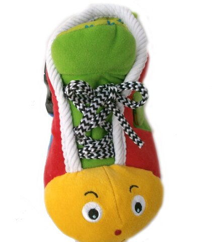 以前可愛くて色が綺麗で手触りがいいので、大好評だった知育玩具=ラーニング シューズ=という商品が有りました。 知らず知らずのうちに指先の訓練や日常生活で必要な動作を学んでいける知育玩具です。 好評に付きこのたび装いも改に再登場いたしました! 今回も可愛い顔と鮮やかな色合いと柔らかな手触りは健在です。 遊びながら色んなことを学んでいく優れものです。 靴には七つの部品が付いていて、それぞれが指先の訓練に役立っています。 ファスナー ボタン マックテープベルト スナップ バックル 靴ひも 歯がためが付いています。 鮮やかで濃い色はお子様が認識しやすく興味を示すので、楽しく一人遊びを始めます。 可愛い化粧箱に入っていますので出産祝いやギフトにとっても喜ばれています。 シューズのサイズ 16cmx18cm