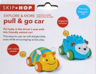 スキップホップの可愛いアニマル・プル ゴーカーズが出来ました。 何度やっても飽きないプルバックカーはお家遊びの必須アイテム♪。 はりねずみさん型とみつばちさん型の可愛い2型で登場。表情が何とも可愛いですね 。 お子様は本当に自動車遊びが大好きです。 繰り返し繰り返し一人で遊びますので、お家遊びの王様おもちゃです ギュッと後ろに引っ張って、さっと手を離すと、勢いよく走り出します。 あのチョロQのようにして遊べます タイヤはゴム製ですので、床に傷をつけないで遊べます 走らせて、取りに行ってまた走らせての繰り返しですので、ハイハイの手引きや足腰の発育にも役立ちます サイズ=約 13cmx8.5cmx8.6cm 出産祝いやギフトにもどうぞ