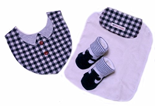 出産祝い ベビーギフトセット ベビー服セット オーガニックコットン 日本製 スタイ よだれかけ ビブ ソックス 靴下 汗取りパッド ビセラ 新生児 ベビーウェアー 綿ニット製 (モノトーンチェック柄)