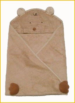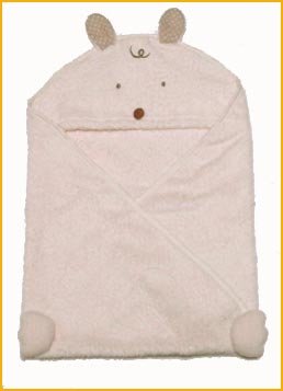 タオル製ベビー服アフガン(おくるみ) 生成りうさぎさん 95cm×95cm