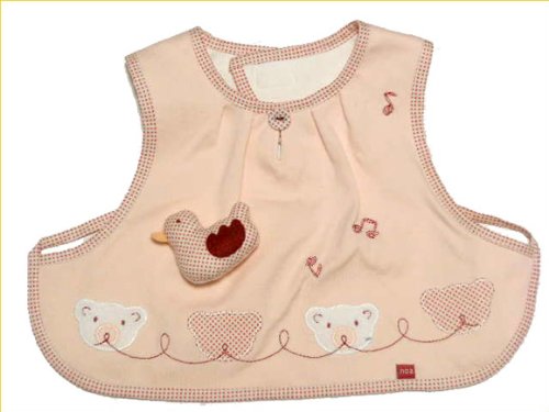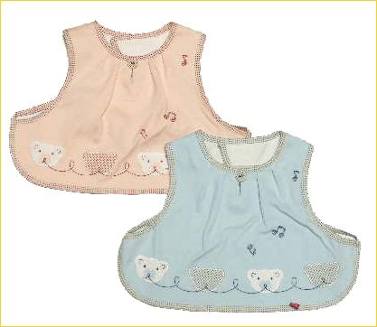 何にでも合わせられて、1枚あるととっても重宝する、エプロンです。うでを通すループがついていますので、ずれにくくしっかりとお召しになれます。タックをとったしあげですので、ゆったりとお召しになれます。首周りは約30cm。棉ニット製の柔らかなベビー服です。ニギニギおもちゃも小さめですので赤ちゃんも持ちやすくて、好評です。出産祝いやギフトにもどうぞサイズエプロン33cmX22cm