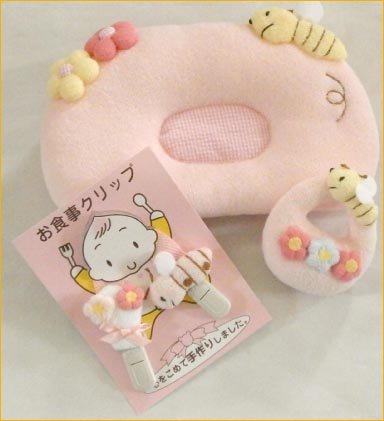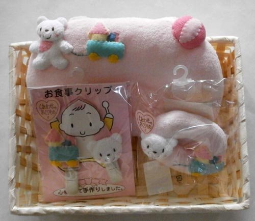 便利で重宝する、柔らかパイルで作ったかわいいベビーだっこ枕兼ドーナツ枕です。一人二役の優れものです。抱っこ枕として使うときは、背中に付いているループに腕を通して、ママの腕に取り付けて赤ちゃんを抱っこしてください。ママの腕に取り付けたベビー枕が丁度いい具合に枕になります。おっぱいをあげたり、だっこして寝かせる時赤ちゃんは沢山汗をかきます。またお母さんの腕も汗だくになりますそんな時ダッコ枕が威力を発揮いたしますどんどん汗を吸湿していくので、赤ちゃんの頭もママの腕もいつも爽快でこれからの季節には最適です赤ちゃんの頭も安定しますので安心してダッコされてます。お出かけの時も、便利ですねまた普通にベッドに置いて使えば、 ドーナツ枕としても使えます。この枕とお揃いのスタイホルダーとガラガラのギフトセットです。白竹製のカゴに入っているのが嬉しい。日本製が嬉しい贈ってもとっても喜ばれる逸品です。
