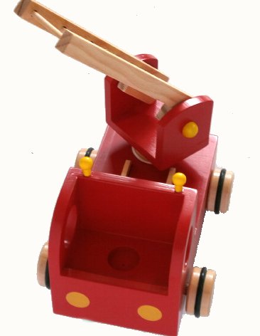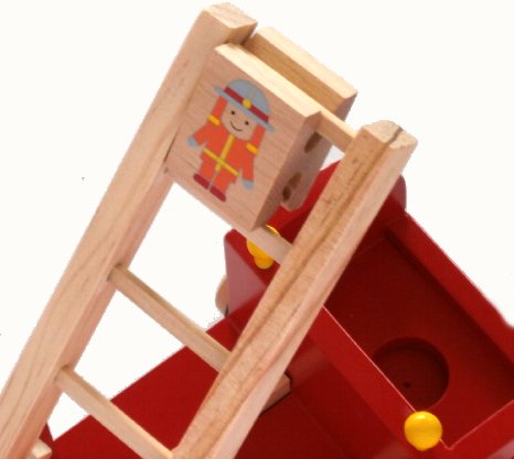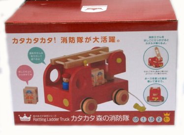 ハイテクおもちゃが氾濫する中、いつの時代も変わらぬ評価を頂いているのが木製トイ それだけ木のおもちゃを皆様が認めてくださっているという事ですね 木のぬくもりを肌で感じ、自然の恵みに接してのびのびと遊びましょう お子様は消防車が大好きですね。ヤッパリ認識しやすい赤色だからでしょうね 引っ張ったり動かしたりいろんな遊び方が出きます。はしごは360度回転し、運転士の消防士さんは取れるようになっています はしごの上に、四角い消防士さんの駒の溝を合わせててを放せば、四角い駒がカタカタと音を出しながら くるくる回りながら落ちてきます。6個も駒がついていますのでじゃんじゃん上から落としましょう 消防隊の塗料は、剥げ落ちにくいように特殊コーティングを施しています。 出産祝いやギフトにも最適です