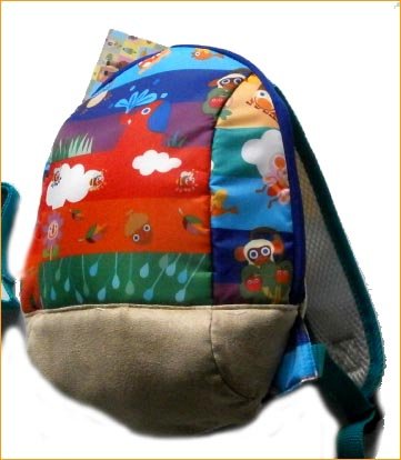 色が大胆で綺麗で、ちょっと見かけない素敵なリュックが出来ました。さすがアメリカデザインですね。 ナイロン製ですので、軽くて丈夫で水や汚れにも強い優れものですね。 しかも取り外し出来る迷子防止紐が付いていますので、ちょこちょこ歩き回るお子様も安心安全にお出かけできます。 迷子防止紐はリュックの下部に取り付けてありますので、防止紐は絡みにくく使いやすいですよ こんなリュックでお出かけすれば、お子様も気分爽快 大喜びです。 裏側はメッシュ仕上げをしていますので、通気性がよくて蒸れずに涼しくしょえるのがいいですね。。 肩ベルトも太めに作っていますし、補強金具がついていますので楽チンでしっかりと背負うことが出来ます。 肩ベルトは30cm-55cmまで調節出来ます。 出産祝いやギフトにもどうぞ サイズ=21cmx28cm