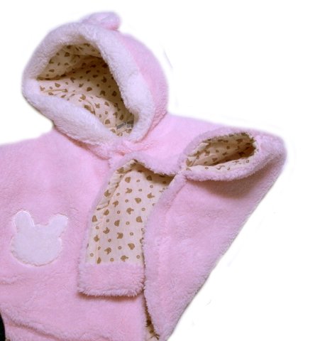 アクリルボア製ベビーマント ケープ ベビー服 ポンチョ おくるみ アフガン ベビー用品出産祝いやギフトにもどうぞ (ピンク)