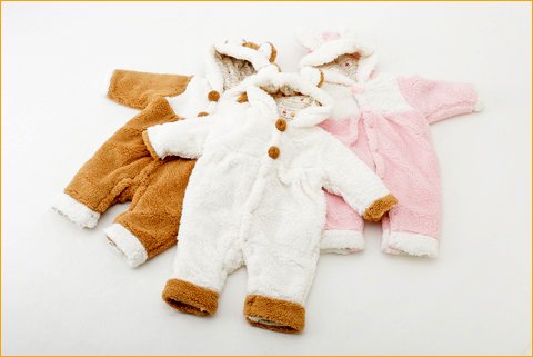 - ボア製のベビーカバーオールが新登場。軽くて暖かなのがうれしい。寒い季節の強い味方です