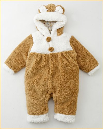 アクリルボア製ベビー服 オーバーオール カバーオール 暖か つなぎ 着ぐるみ 防寒着 おくるみ 出産祝いやギフトにもどうぞ (ブラウン)