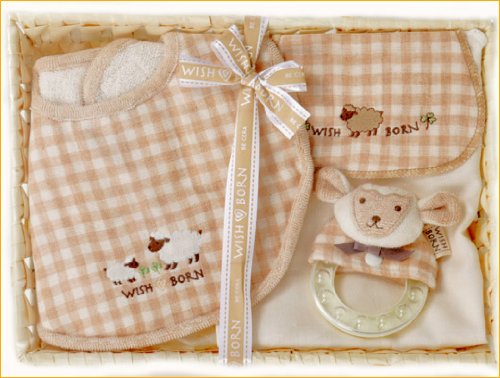 出産祝いギフト ベビー服 ギフトセット カゴ詰め ビセラ タオル スタイ 汗取りタオル ひつじさんのベビー雑貨 ベビー用品=日本製のビセラのベビー用品=出産祝いやギフトにもどうぞ