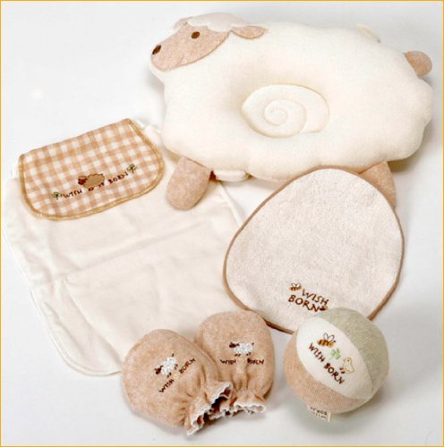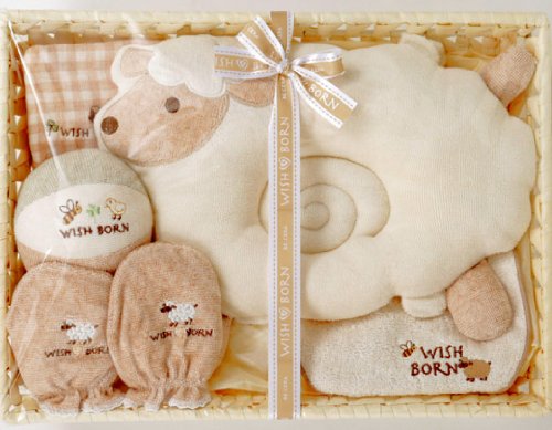 人気のひつじさんシリーズに可愛いカゴ入りギフトが出来ました。 オーガニックコットンを使用し、ガーゼとパイルを組み合わせた高級ベビーギフトです。めちゃめちゃ柔らかですよ アイテムも腕枕と汗取りタオルとミトン 授乳パット ボールの5点セットでどれも重宝で必要なものばかりです。 5点も入って、しかも日本製でこのお値段はとってもお値打ちで嬉しい。 腕枕は抱っこした時、赤ちゃんのあたまが安定し、また頭にかく汗も吸湿するすぐれ物です。 サイズは18cmx30cmのたっぷりサイズ。 汗取りタオルは赤ちゃんの背中に入れてあげて、汗でびしょびしょになったらサッと引き抜いてあげれば、いつも背中は爽やかです。 激しい新陳代謝でいつも汗をかく赤ちゃんの秘密兵器です。 ミトンは保温だけではなく、爪保護にも役立ちます 授乳パットはおっぱいやミルクの時、赤ちゃんの顔の下に敷いてあげれば柔らかくて気落ちよくて快適です。タオル製ですので吸湿性もたっぷり ボールもたのしく一人遊びを致します。 またカゴ入りですので容器のカゴは後から色んなことに使えてとっても便利でおやれなギフトですね サイズ=新生児から。日本製が嬉しいベビー用品です。