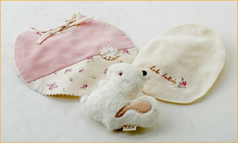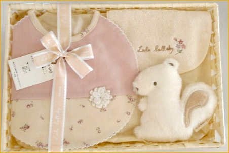 淡い色で上品な仕上がりの小花柄シリーズに可愛いカゴ入りギフトが出来ました。 綿ニット製のスタイとタオル製の授乳スタイと、とっても柔らかなマスコットの3点セットです。 定番の小花柄ですが、上品で高級感のある仕上がりですので贈り物にはぴったりです。 しかも日本製でこのお値段はとってもお値打ちで嬉しい。ちょっとしたギフトには最適です 赤ちゃんは授乳時にはいっぱい汗をかきます。そんな時にこの授乳スタイをお顔の下に敷いてあげればどんどん吸湿して爽やかにのめますね。 また頭にかく汗も拭ってあげられます。さらにお顔が直接ママのお洋服には触れませんので、ごわごわしなくて快適です。 またママのお洋服を赤ちゃんのよだれから守ります。1枚あると本当に便利なベビー用品です。 賢いママの秘密兵器ですね。サイズ=15cmx18cm 綿ニットスタイは柔らかくて赤ちゃんのお口にはとっても優しいです。スタイは何枚有っても重宝しますね。 また、セットに入っているマスコットがとってもふわふわで柔らかで気持ちが良いです。 高級なぬいぐるみにも負けない位の仕上がりですので、赤ちゃんの大切なお友達になることは間違いありませ。 またカゴ入りですので容器のカゴは後から色んなことに使えてとっても便利でおやれなギフトですね サイズ=新生児から。日本製が嬉しいベビー用品です。